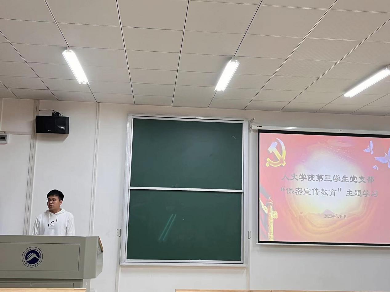 5月6日,人文學(xué)院研究生第三黨支部在昭潭書院校區(qū)2教301教室開展“堅持和加強黨的領(lǐng)導(dǎo)”及“保密宣傳教育”主題學(xué)習(xí)活動。