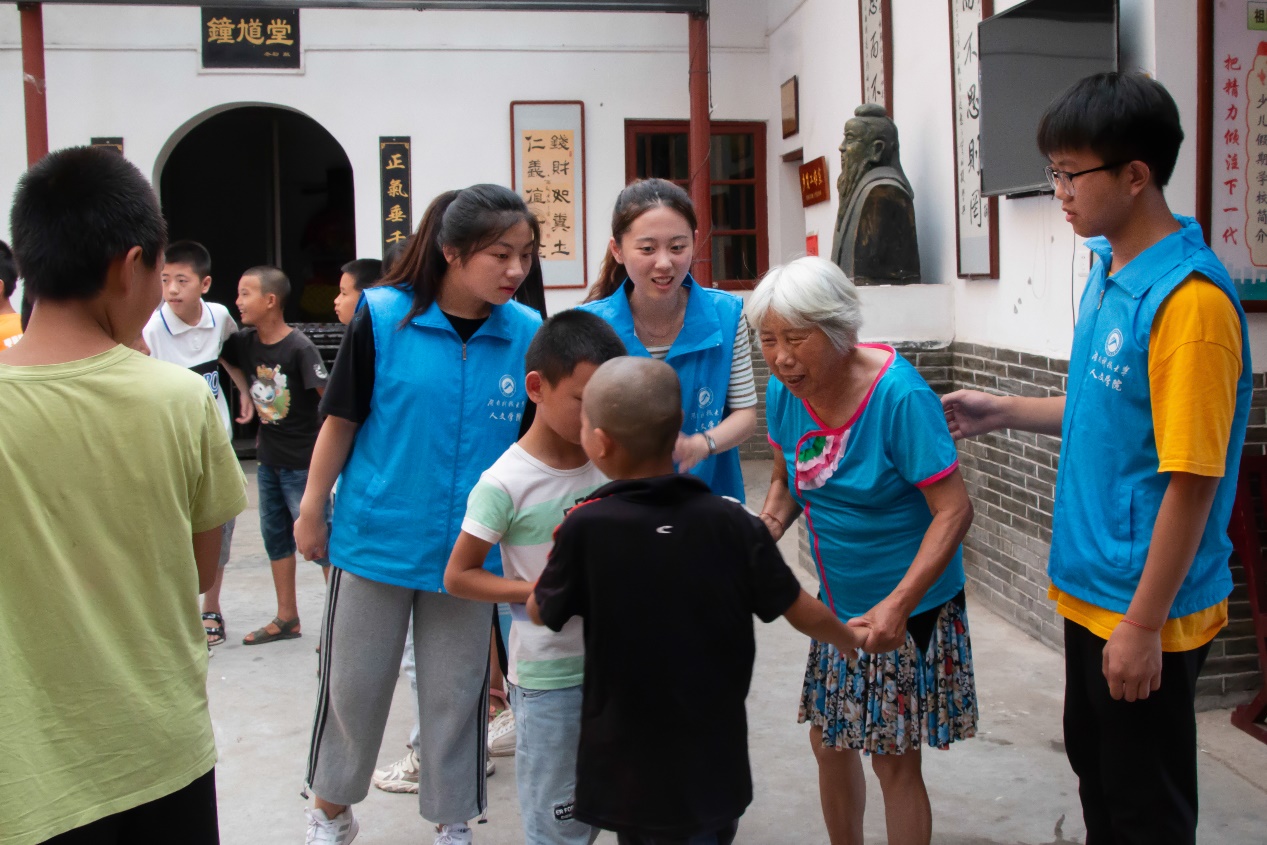 ▲楊蓮金老師和志愿者們與孩子們積極互動(dòng)