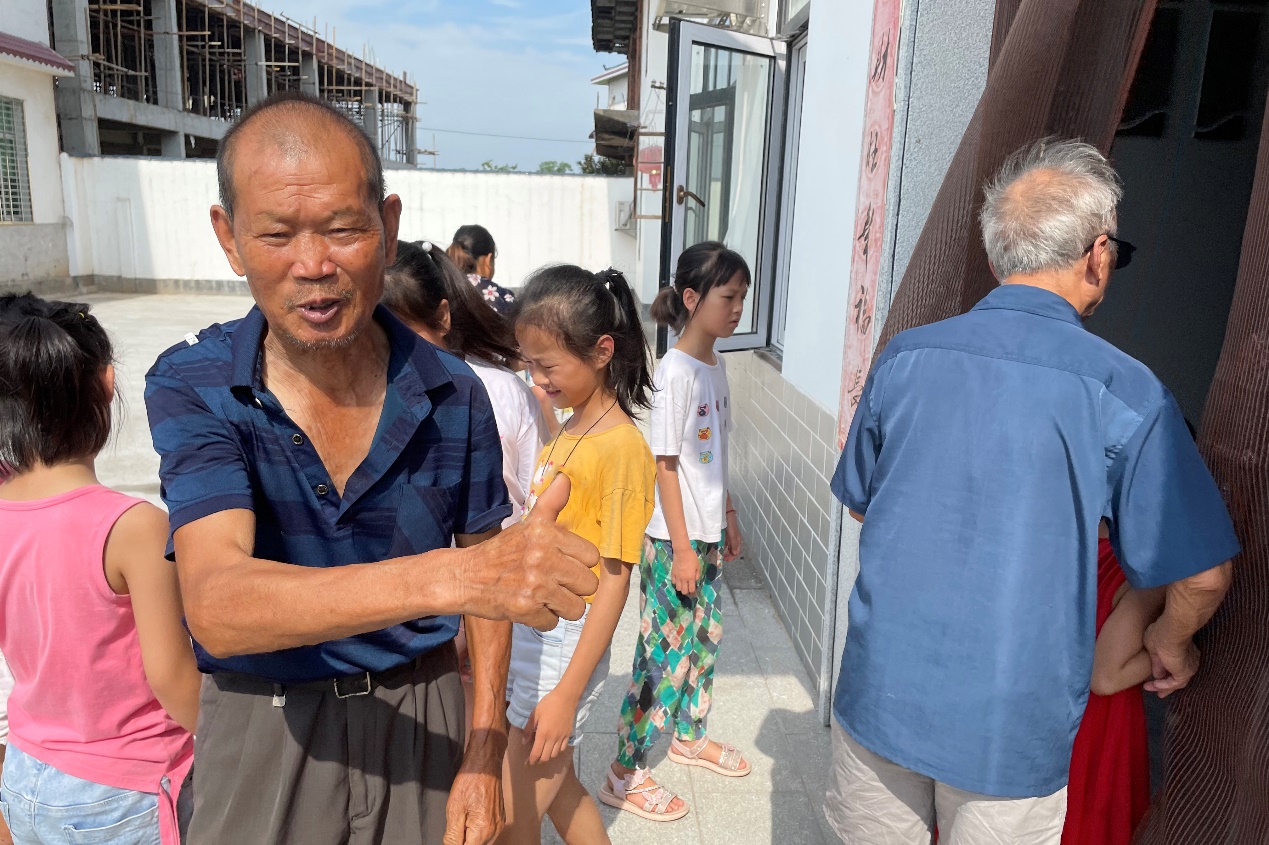 志愿者們積極熱情的服務(wù)不僅讓孩子們感受到學(xué)習(xí)的樂趣,同時(shí)也贏得了家長(zhǎng)的信任。在教室外的涼亭中里,零星家長(zhǎng)圍坐閑談。“今年暑假小孩沒有去父母那,留在鄉(xiāng)下,我就想著把他送到這學(xué)習(xí)。”徐塘斌的爺爺笑著說道。還在上幼兒園的湯麗榮“預(yù)定”了明年下半年的名額。湯麗榮的媽媽說,“今天帶她來看看,了解一下情況,明年暑假再把她送到這里來上一年級(jí)。”