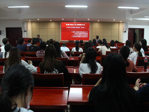 為了增強(qiáng)學(xué)生對(duì)岳麓書院和湖湘文化的了解,提升歷史文學(xué)涵養(yǎng),9月25日晚,我院邀請(qǐng)湖南大學(xué)古籍整理研究所所長、中國書院研究中心主任鄧洪波教授于立言樓B4-1舉行以“岳麓書院山長與湖湘文化”為主題的學(xué)術(shù)講座。本次講座由金身佳教授主持,我院歐陽萍副院長、徐紅教授、戴書宏、宋登卯講師以及16、17級(jí)歷史學(xué)專業(yè)的學(xué)生代表到場(chǎng)聆聽。