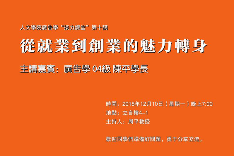從就業(yè)到創(chuàng)業(yè)的魅力轉(zhuǎn)身 ——我院廣告學(xué)“接力課堂”第十講順利舉行