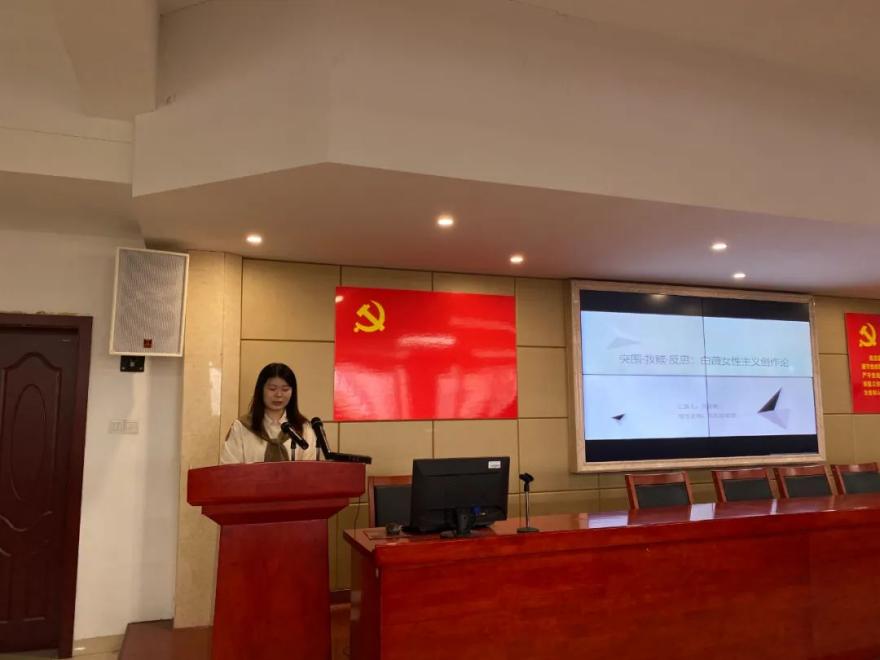 李慧娟同學(xué)分享的題目是《袁昌英的女性意識(shí)研究——以其戲劇創(chuàng)作為中心》,圍繞女性主義視角下的戲劇創(chuàng)作、雙性同體的女性主義詩學(xué)、異域話語背后的傳統(tǒng)精神三個(gè)層面展開剖析。